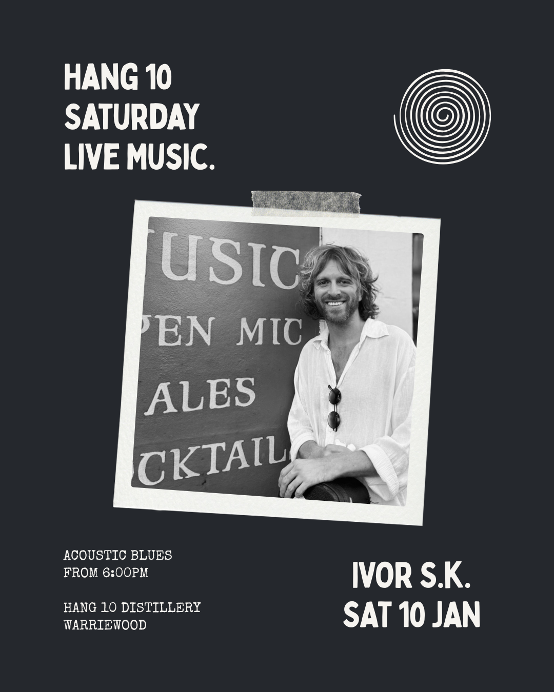 We’re excited to welcome Ivor S.K. to Hang 10, a Northern Beaches blues guitarist with a dark, smoky voice and beautifully fluid acoustic style. After time spent deep in the Delta and years playing blues clubs in New Orleans (including a weekly residency at the legendary Chickie Wah Wah), Ivor brings a sound that’s raw, soulful, and steeped in tradition, but never stuck in the past. Expect classic blues storytelling, effortless guitar work, and a set that feels just as good with a cocktail in hand as it does leaning into the music. 🎸