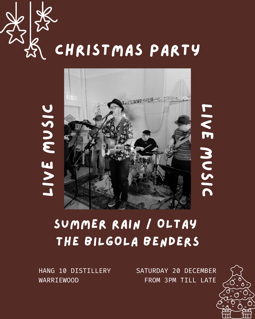 More information coming soon but get ready for an epic Christmas Party for the last Saturday of 2025 at Hang 10 Distillery.